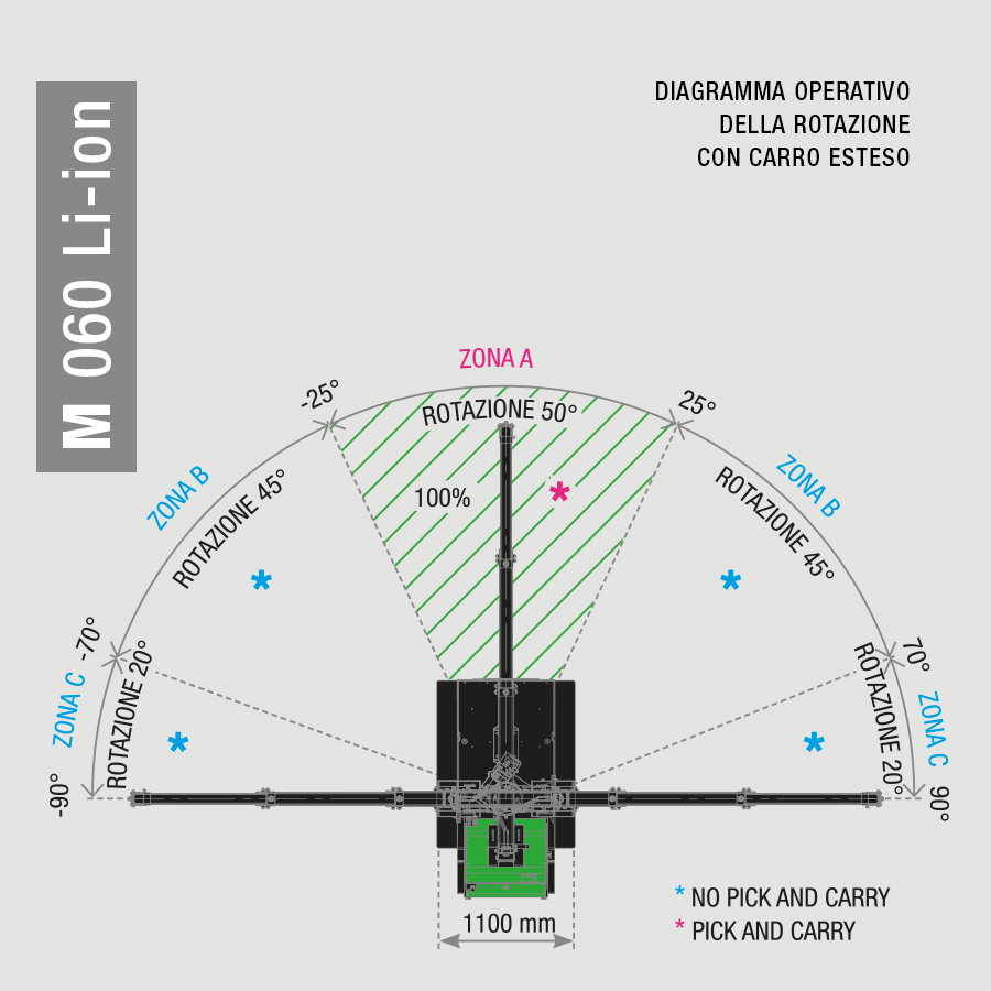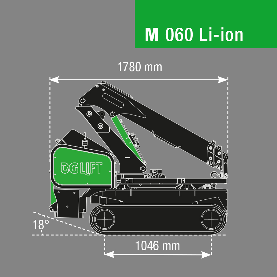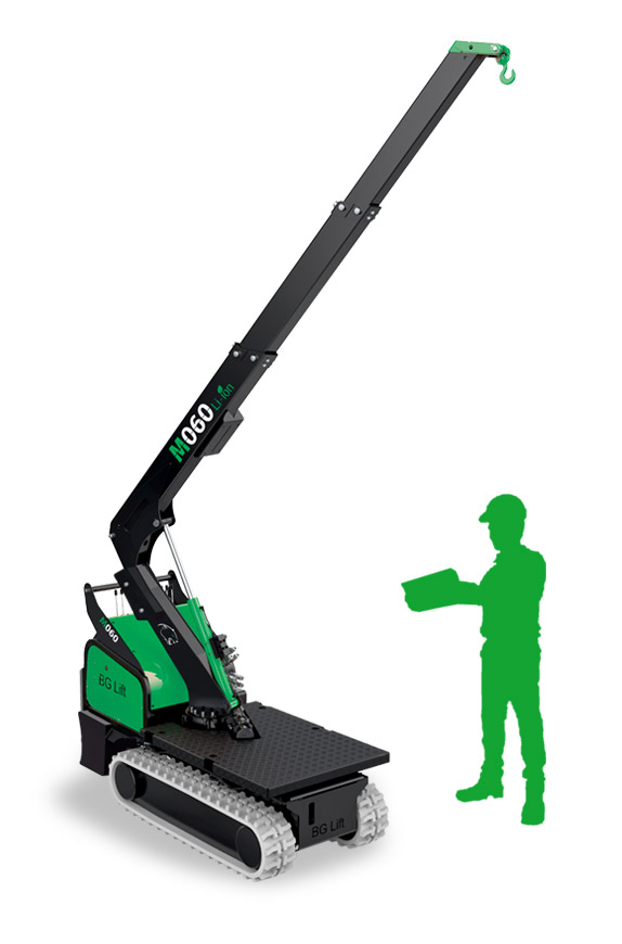 The “Pick and Carry” mini crane provided with (50°) rotation.Extremely compact and ergonomic. Designed by BG LIFT Team to confer agility, robustness and to be used in narrow spaces and access.Perfect for indoor and outdoor use.The restrained weight allows the crane to operate on the base floor of upper levels, totally in compliance with the regulations.