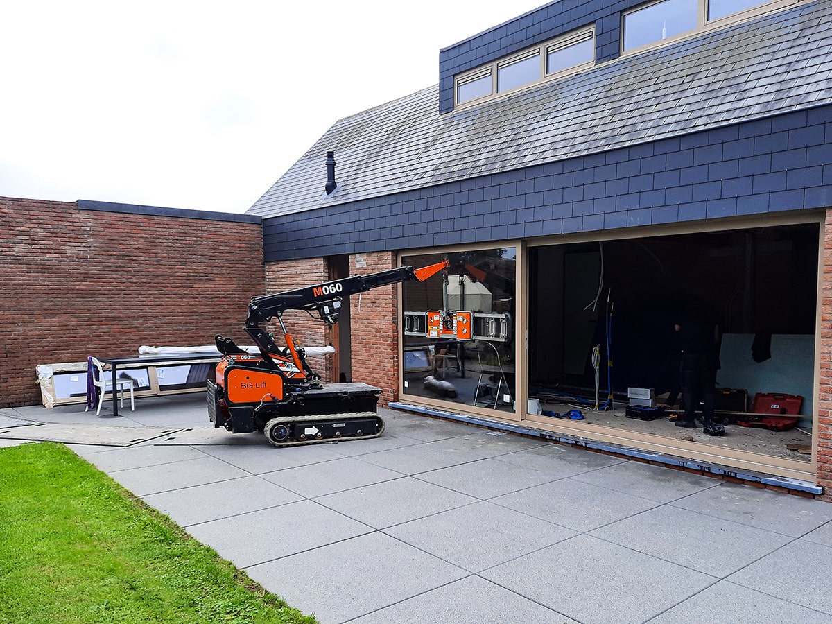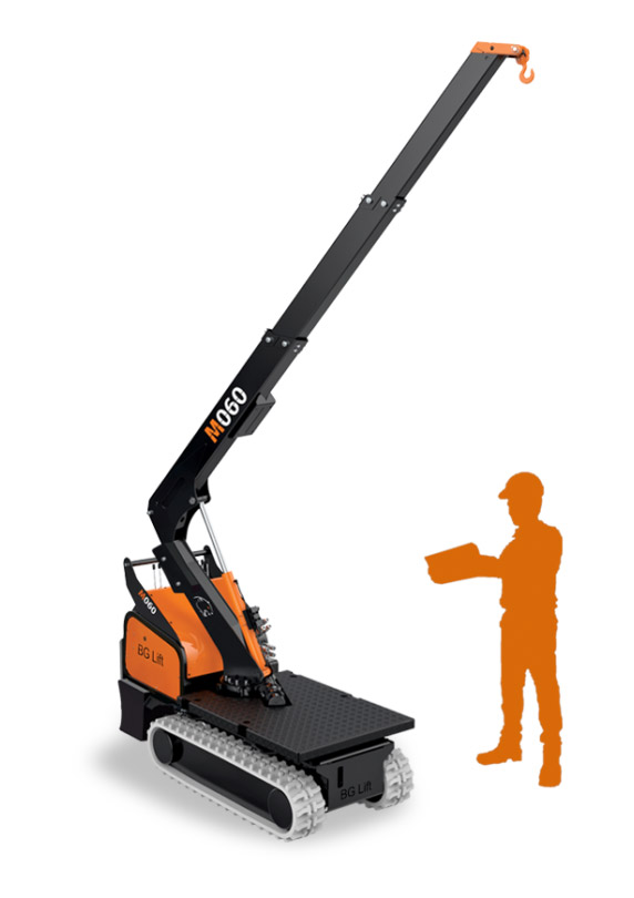 The “Pick and Carry” mini crane provided with (50°) rotation.Extremely compact and ergonomic. Designed by BG LIFT Team to confer agility, robustness and to be used in narrow spaces and access.Perfect for indoor and outdoor use.The restrained weight allows the crane to operate on the base floor of upper levels, totally in compliance with the regulations.