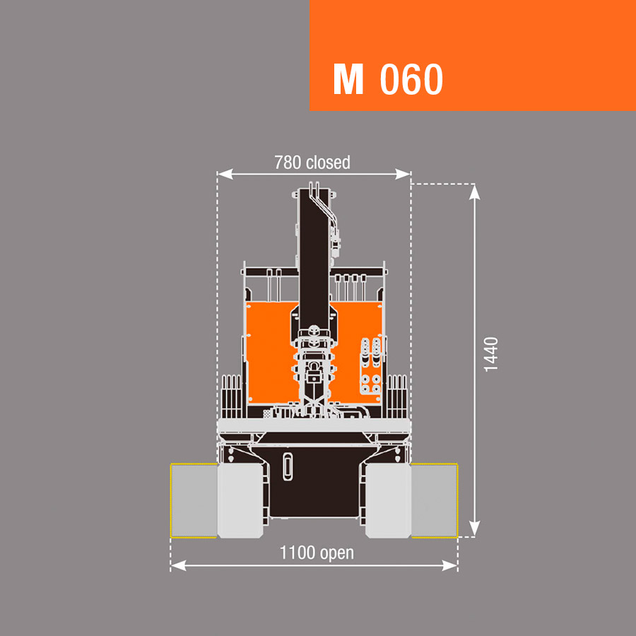 Crawler Crane Traction | Trasmission: Moto-reducer Scope: 30 l/min Pressure: 150 Bar Speed: 0 – 2 Km/h Max slope degree: 20° Max pressure on the ground: 0,25 Kg/cm² |