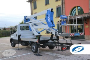 New forSte 27D SPEED is a high-performance double-articulated platform with standard automatic stabilization mounted on a 3500kg truck. It reaches a working height of 27 m and a lateral reach of 12 m with a load capacity of 250 kg in the basket, (2 operators + material).