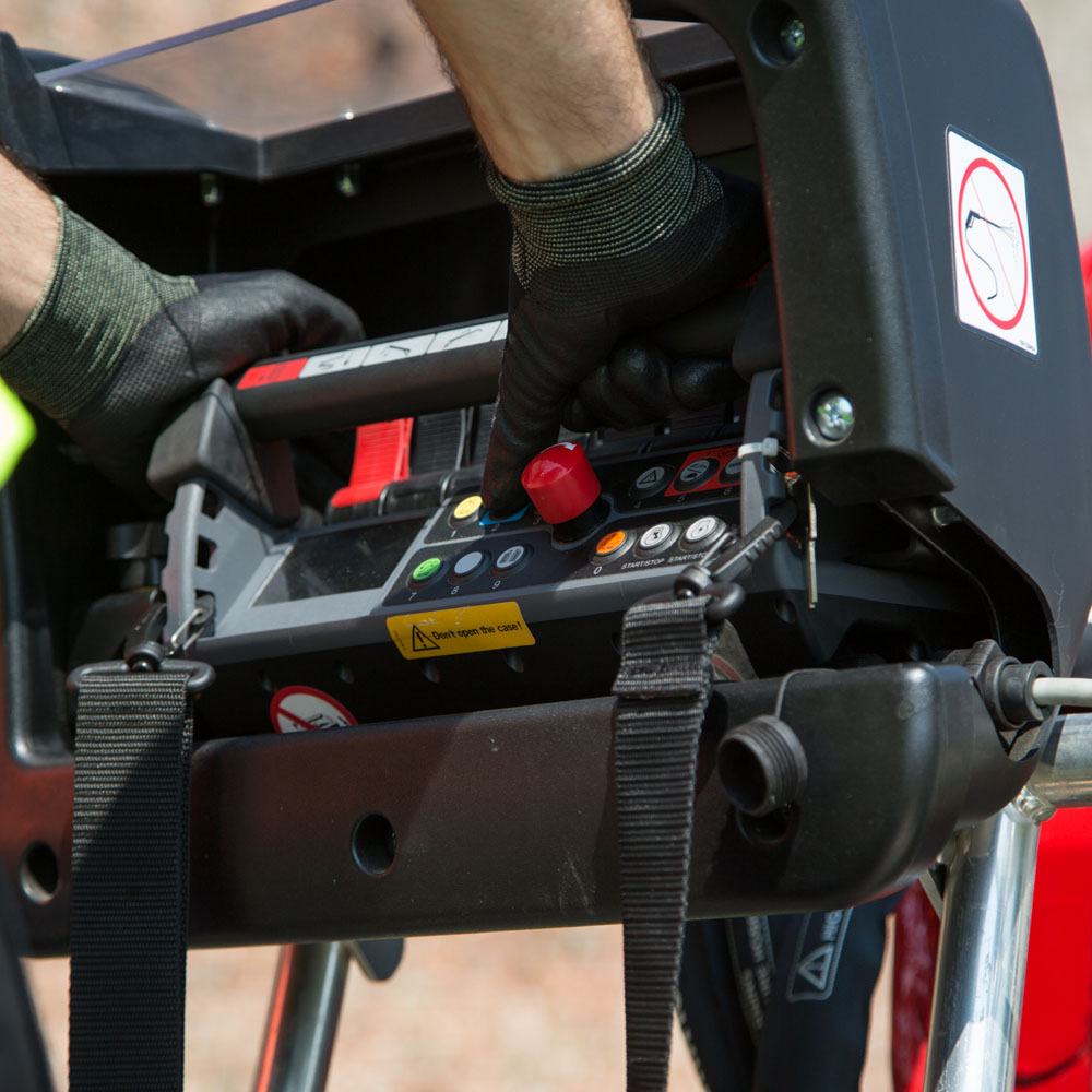 - The machine automatically slows down or stops in critical conditions thanks to the tilt control.