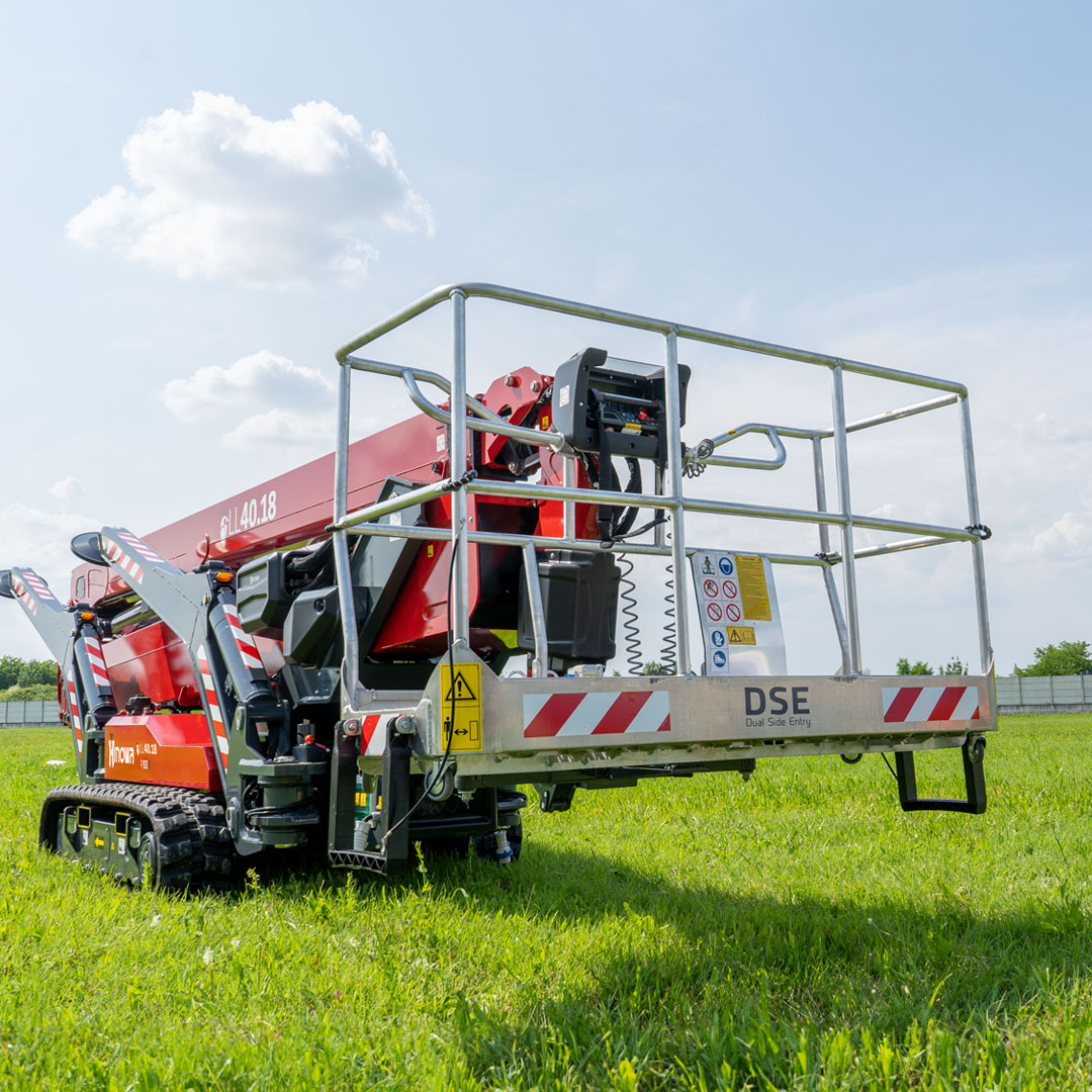 The kinematics of this new model are the same as the Lightlift 33.17, with a four-section lower boom, a three-section upper boom and a jib. The Lightlift 40.18 basket maximum capacity is of 300 kg, which makes it possible to accommodate 3 people plus 60 kg of accessories.