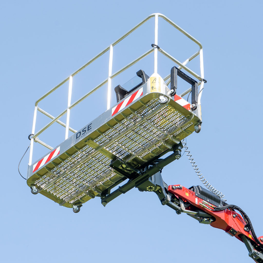 - A spacious and comfortable basket with maximum capacity of 300 kg, which allows to accommodate 3 people plus 60 kg of accessories. This basket measures 200 x 70 cm to allow large and comfortable room for operators and tools.