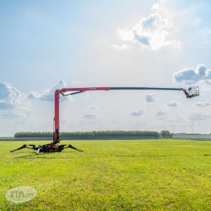 This aerial platform can reach a working height of 40.2 m when stabilized in full area and 35 m in restricted area, in both cases with a load capacity of 230 kg. Maximum working outreach is 17.5 m in full area and 10, 8 m in reduced area.