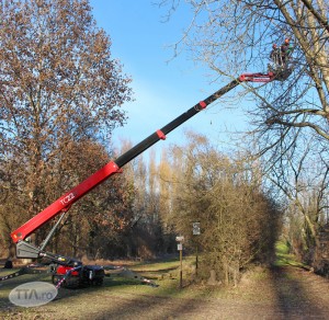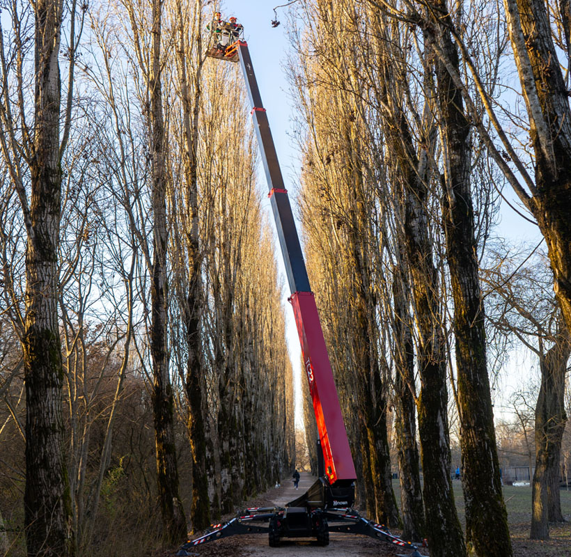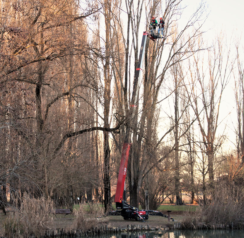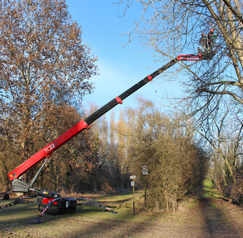 - Light and compact: under 3 tons of weight, with a maximum working height of 22 m, and max. outreach of 12.4 m with one person in the basket (capacity of 136 kg) and 11 m with two people in the basket (capacity of 230 kg).