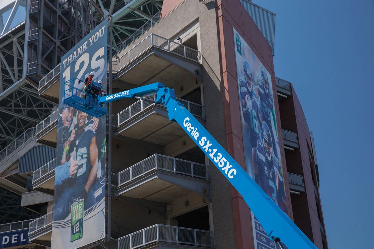 La piattaforma a braccio telescopico Genie® SX™-135 XC™ fornisce 3 m (10 piedi) di sbraccio in più e il 32% in più di capacità nell'intero spazio di lavoro rispetto ai tipici bracci semoventi di queste dimensioni. Grazie alla sua esclusiva capacità di salita e discesa, gli operatori supereranno facilmente qualsiasi ostacolo in altezza.