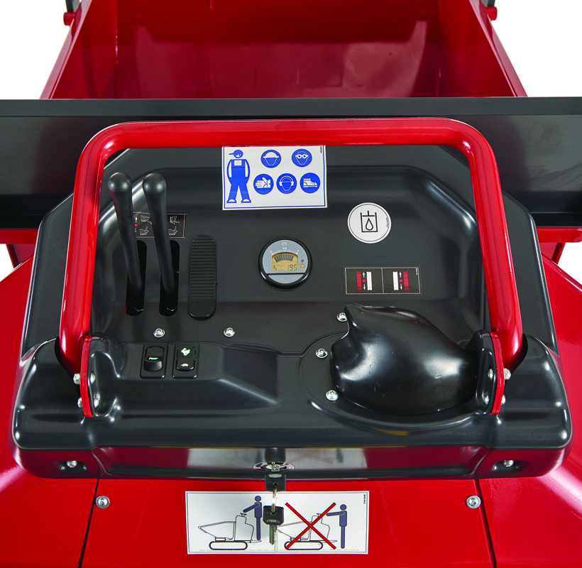 - Pannello di controllo semplice e sicuro da utilizzare, grazie ai joystick ergonomici e al sensore “enable” utile ad evitare che l’operatore esegua movimenti in maniera accidentale e la possibilità di scegliere tra due velocità: “ecomode” sulle superfici sconnesse e per risparmio energetico, “power” su terreni piani.