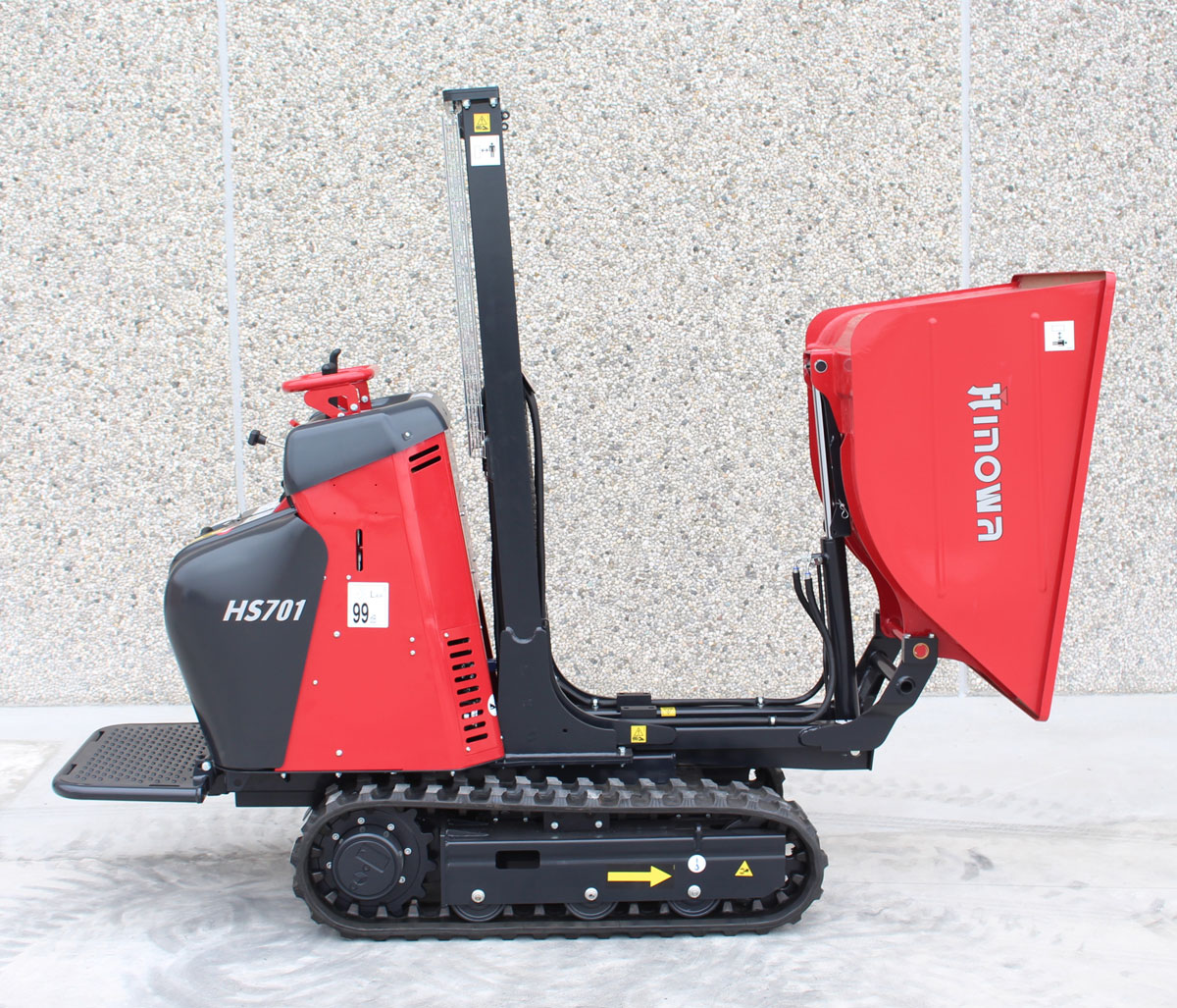 Disponibile in una motorizzazione diesel Kubota da 9,4 HP con avviamento elettrico e una benzina Honda da 8,4 HP con avviamento elettrico, il minidumper HS701 con cassone extra scarico alto è stato progettato per garantire un’altezza di scarico ancora più elevata, per poter arrivare alle altezze tipiche dei camion con patente B.