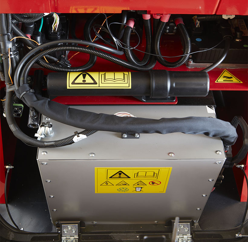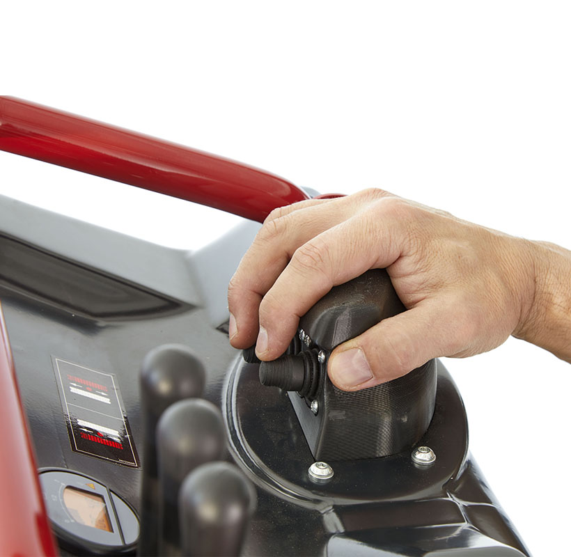 - Pannello di controllo ancora più semplice e sicuro da utilizzare, grazie ai joystick ergonomici e al pulsante “enable” utile a evitare che l’operatore esegua movimenti in maniera accidentale e la possibilità di scegliere tra due velocità: “ecomode” sulle superfici sconnesse e per risparmio energetico, “power” su terreni piani.
