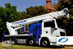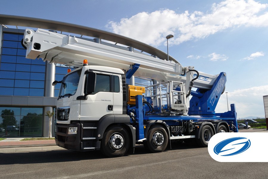 54TJJ è una piattaforma telescopica su autocarro con JIB che può essere installata su autocarri con p.t.t. minimo da 26 tonnellate. Questo modello è dotato di un braccio secondario che consente all’apparecchiatura di effettuare manovre che non sarebbero possibili con un cesto dotato di un solo JIB.