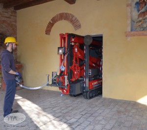 - Maneggevolezza d’uso data dal ridotto ingombro (altezza in fase di traslazione inferiore a 2 metri)