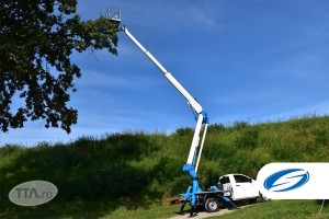 Questa pick up con cestello è in grado di raggiungere un’altezza di lavoro di 15,50 m e uno sbraccio massimo di 7,30 m di portata laterale. Con una capacità massima di carico nel cesto di 250 kg. (2 operatori + materiale). La rotazione del cestello è di 90º a sinistra + 90º a destra.