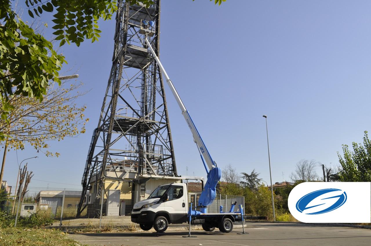 La SOCAGE forSte 23T SPEED è una piattaforma con cestello telescopica ad alte prestazioni e stabilizzazione automatica di serie con un peso ottimale per il montaggio su autocarri di 3,5t, in grado di raggiungere un’altezza di lavoro di 22,80 m e un ampio raggio laterale di 12,50 m, con una capacità di carico di 230 kg (2 operatori + materiale).