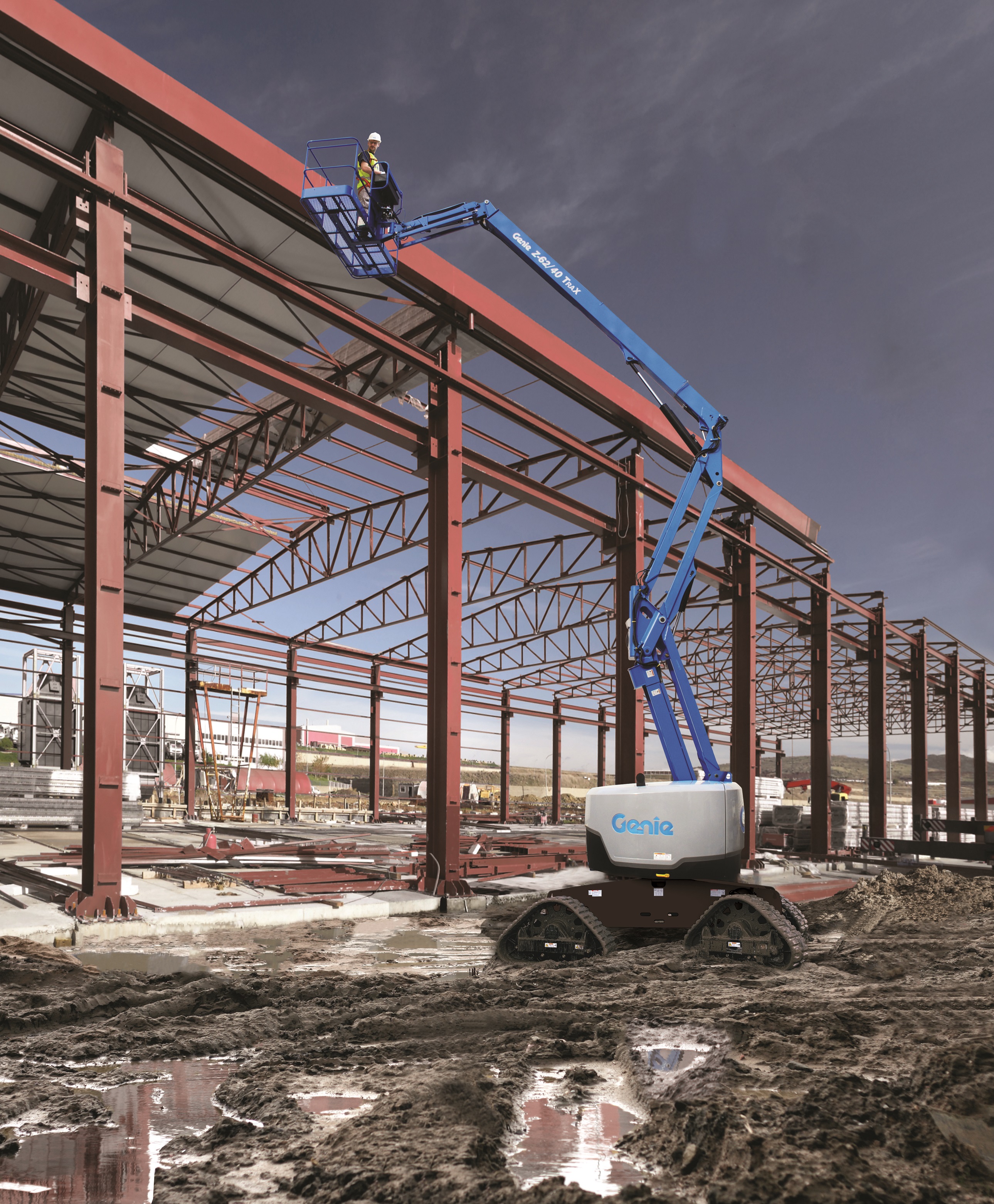 - Quattro ruote sterzanti ed esclusive opzioni del sistema di trazione su cingoli Genie TraX™ a quattro punti indipendenti